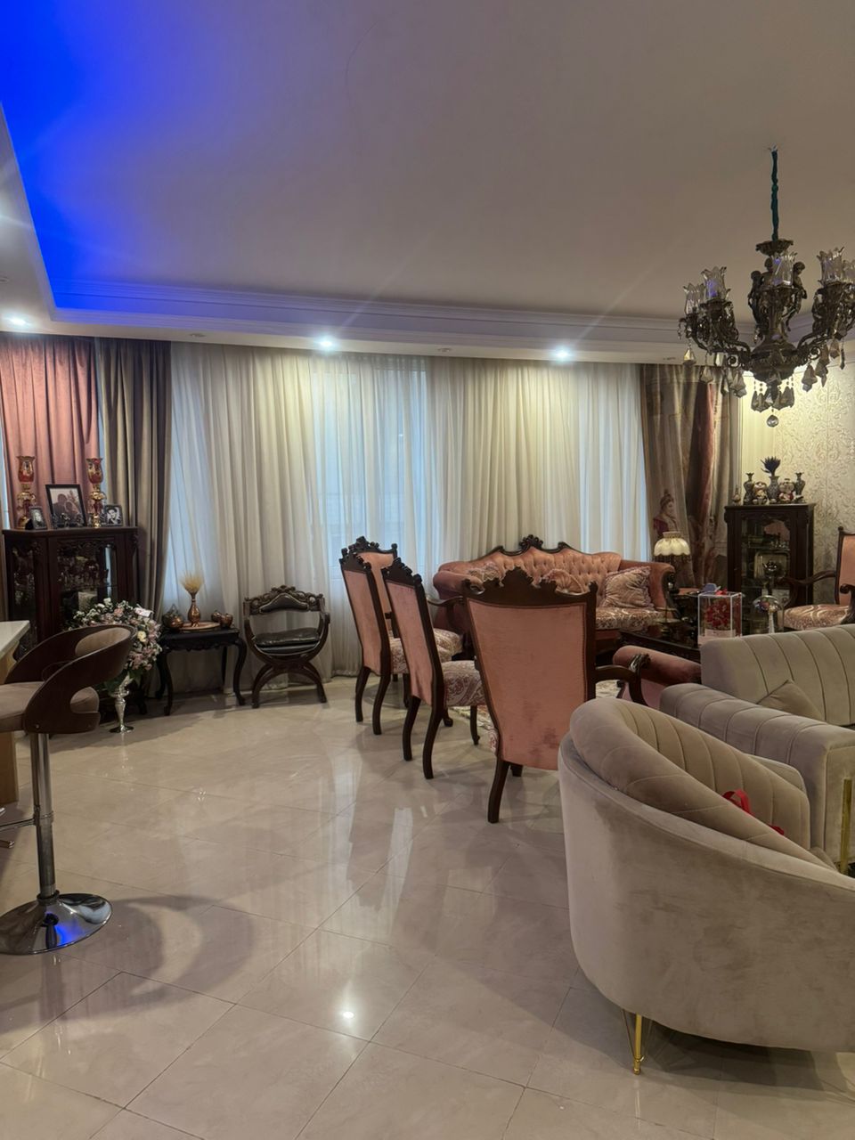 ۱۳۰ متر دو خوابه سالن سرتاسر پرده خور شیک خوش نقشه